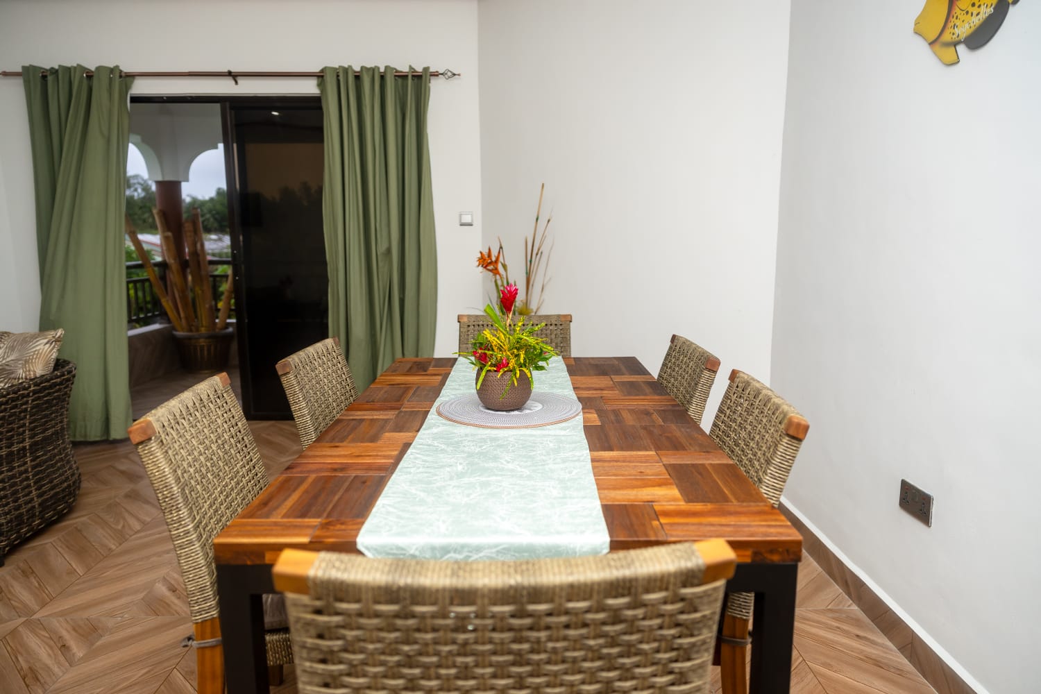 - Open-Plan Living and Dining Area: A bright and airy space with plush seating, perfect for unwinding after a day of exploring. The dining area comfortably seats six and opens to a balcony where you can enjoy morning coffee with tropical views.
